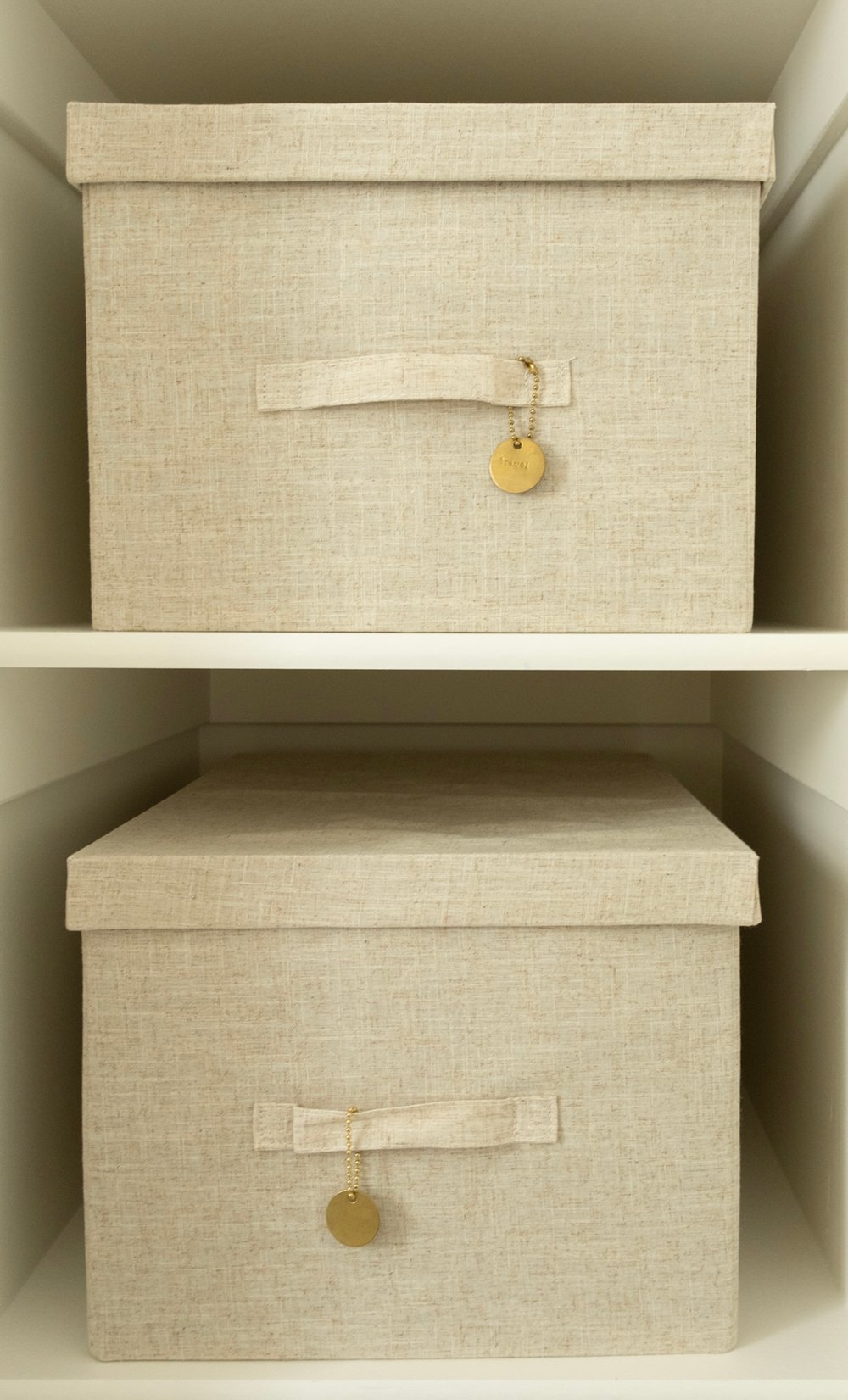 I first purchased the supplies to make these tags a few years ago & used them to label gifts and stockings while decorating for the holidays. Since then, I’ve used them all around the house for various organization and crafting projects. I even labeled a spare house key to give to my parents in case of emergencies. There are so many uses! Here are some quick ideas for using these custom brass tags…