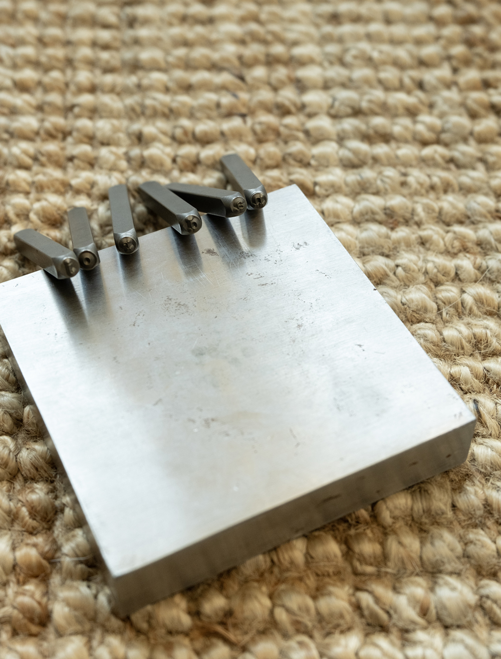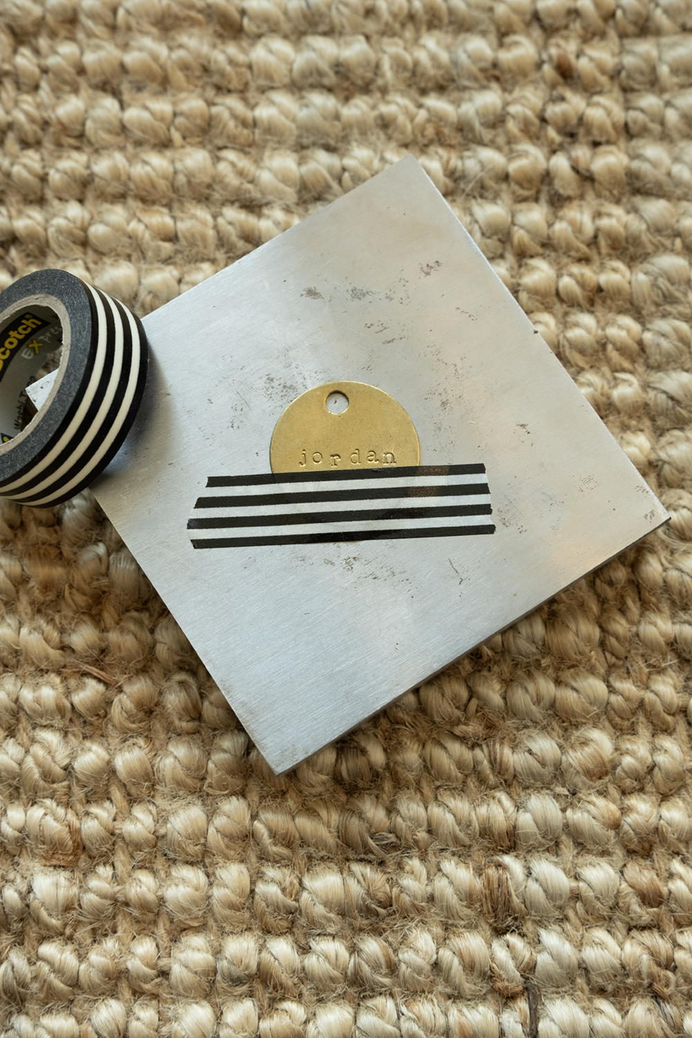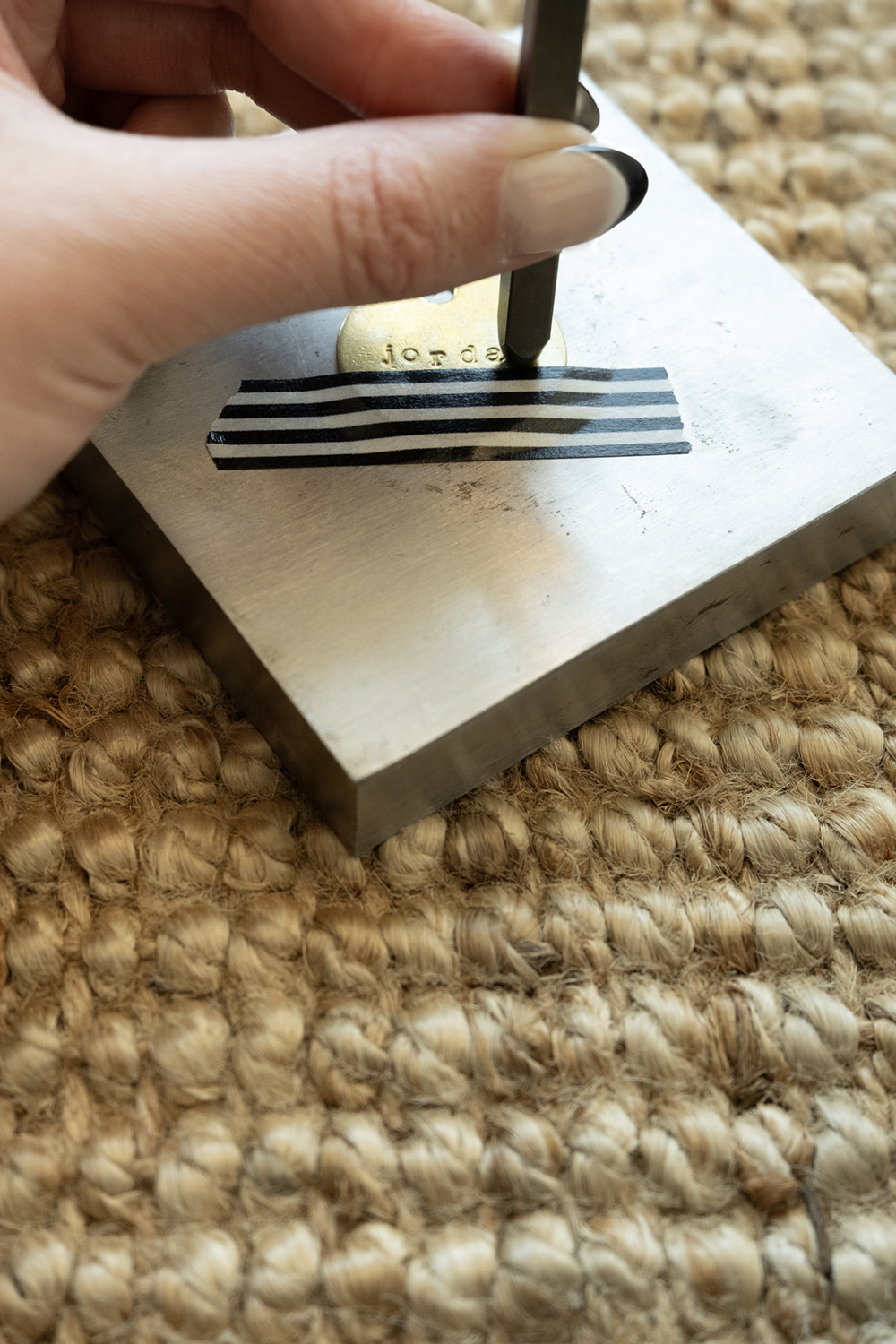 I start stamping my letters from the center and move outwards. So when Stamping J – O – R – D – A – N, I start with the R & D (splitting the center), then stamp the O & A, and end with J & N. Hold the stamp steady, and hit it once (hard!) with the hammer to avoid double stamping.