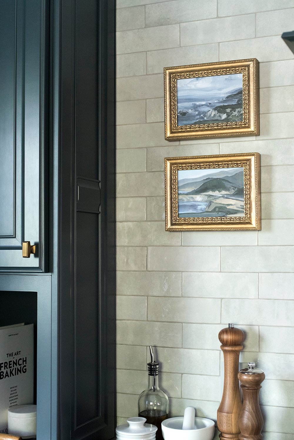 I really had fun filling all of the cabinets and bringing our kitchen items back upstairs from the basement. My grandmother’s rolling pin sits in front of my cookbooks and my best friend’s artwork hangs on that stunning Bedrosians backsplash tile. I told you- our treasures are sprinkled throughout!